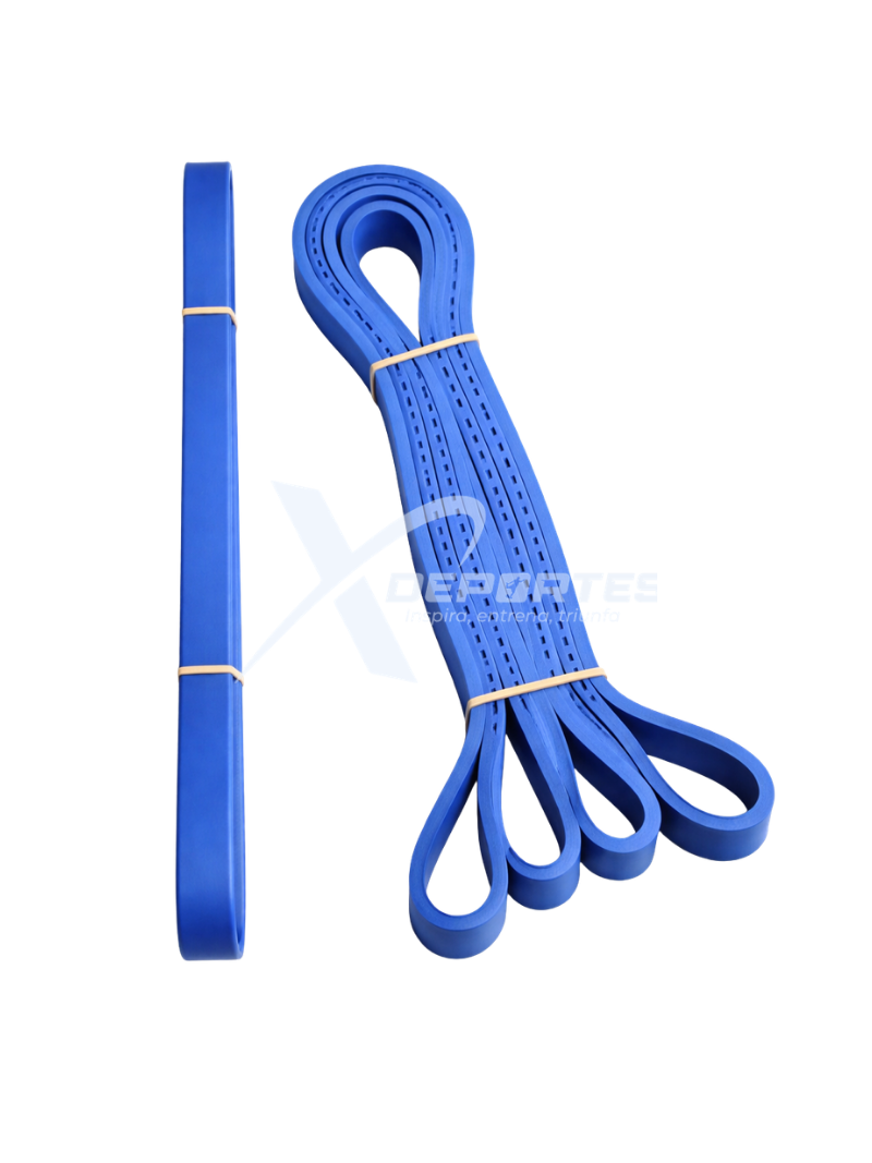 Banda de fuerza de 125 lb, fabricada en látex natural y diseñada para ejercicios de resistencia, movilidad y asistencia en dominadas. Gracias a su formato cerrado y sus medidas de 2080 x 4.5 x 32 mm, ofrece un nivel de tensión ideal para calentamiento, tonificación, entrenamiento funcional y fortalecimiento muscular. COLORES: CELESTE