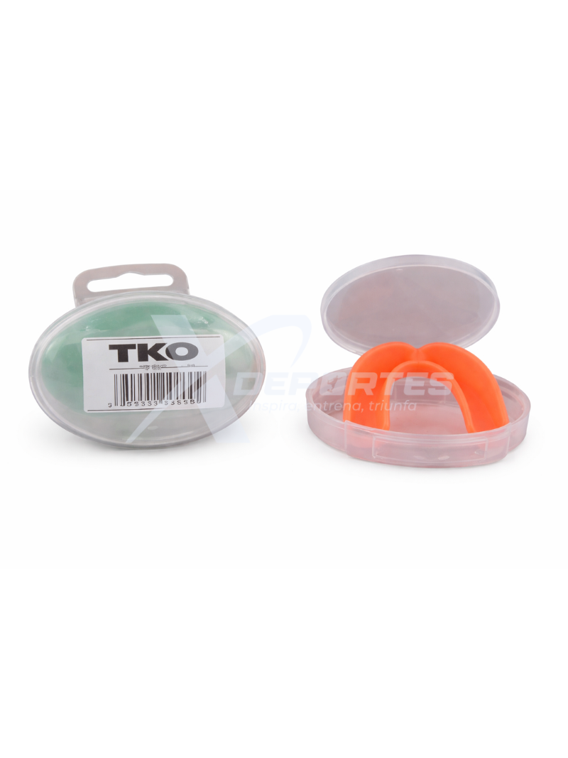 Protector bucal simple TKO de material sintético moldeado, ideal para proteger dientes y mandíbula durante entrenamientos y deportes de contacto. Su diseño de una sola arcada ofrece ajuste práctico e incluye estuche para guardado higiénico. COLORES: COLORES, TRANSPARENTE