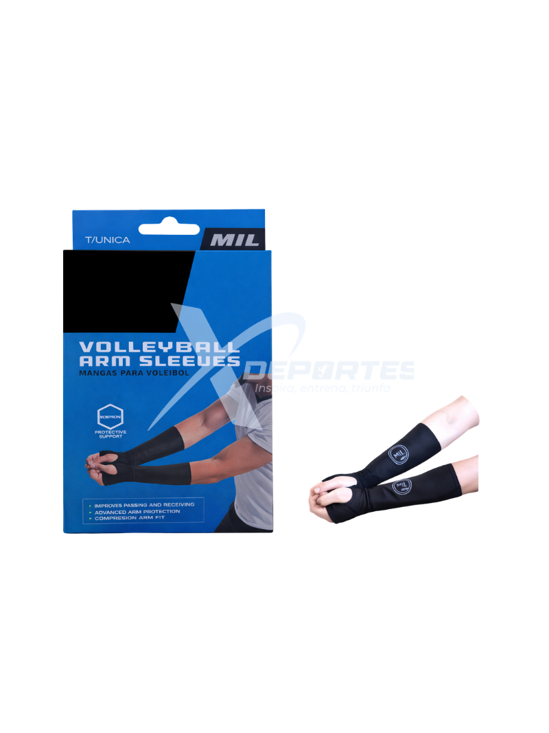 Protector de brazo para voleibol con diseño tipo manga, elaborado en material elástico y transpirable, ideal para ayudar a proteger el antebrazo del impacto del balón y del roce con el piso durante entrenamientos y partidos. COLORES: NEGRO