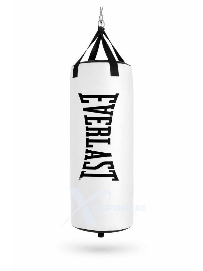 Saco de boxeo Everlast 80 lb con doble sistema de suspensión, correas reforzadas, relleno de fibras y arena, y estructura pensada para entrenamientos intensos. Incluye herrajes básicos para montaje y se comercializa comúnmente en formato COLORES: BLANCO