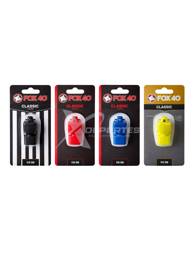 Silbato Fox 40 Classic de 3 cámaras, sonido fuerte de 115 dB, diseño sin bolita y sin piezas móviles, ideal para arbitraje y entrenamiento. Disponible en varios colores. COLORES: ROJO, NEGRO, AZUL, AMARILLO