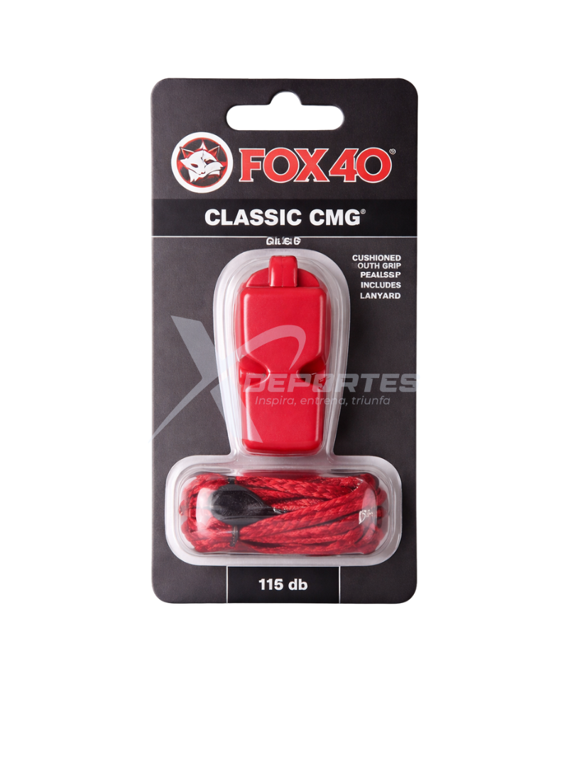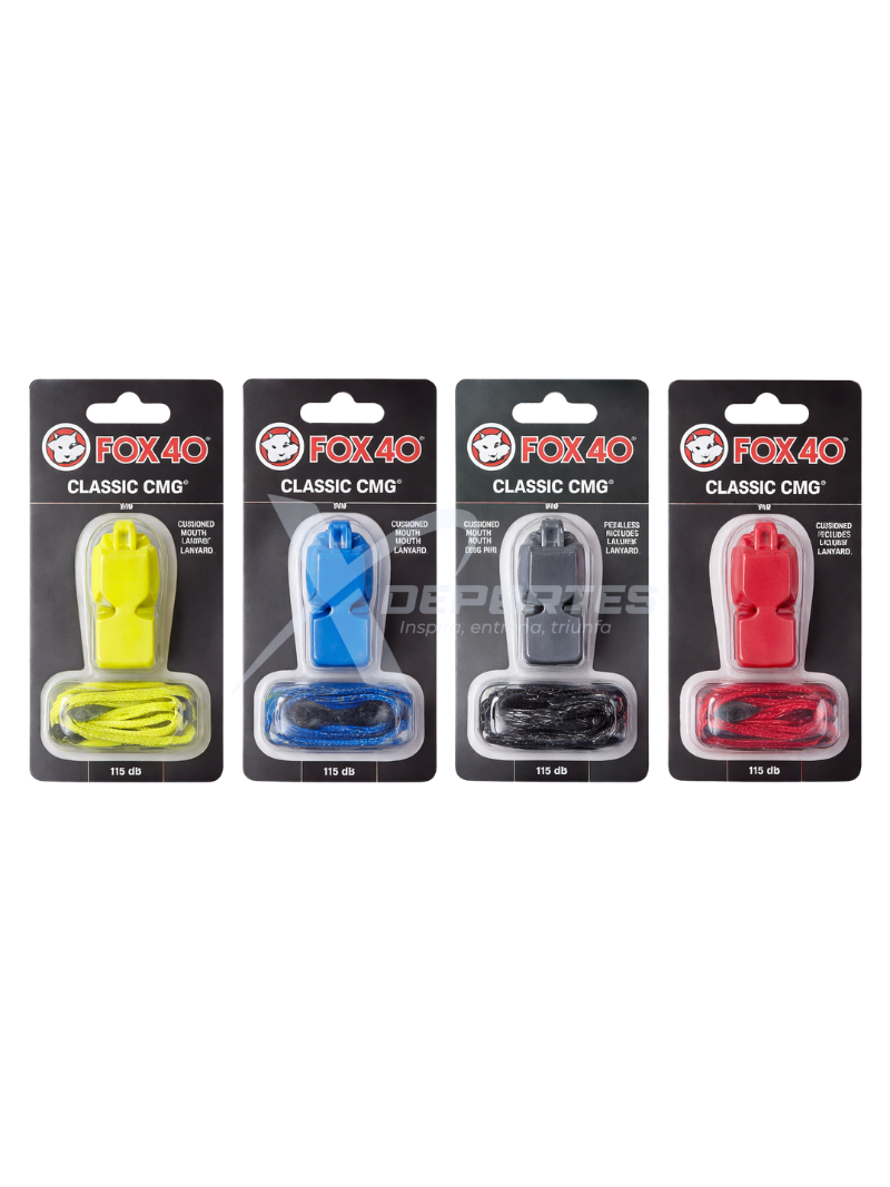 Pito Fox 40 Classic CMG con cordón, de 3 cámaras, sonido potente de 115 dB, boquilla CMG acolchada y diseño sin piezas móviles para un rendimiento confiable en arbitraje y entrenamiento. COLORES: AMARILLO, AZUL, NEGRO, ROJO