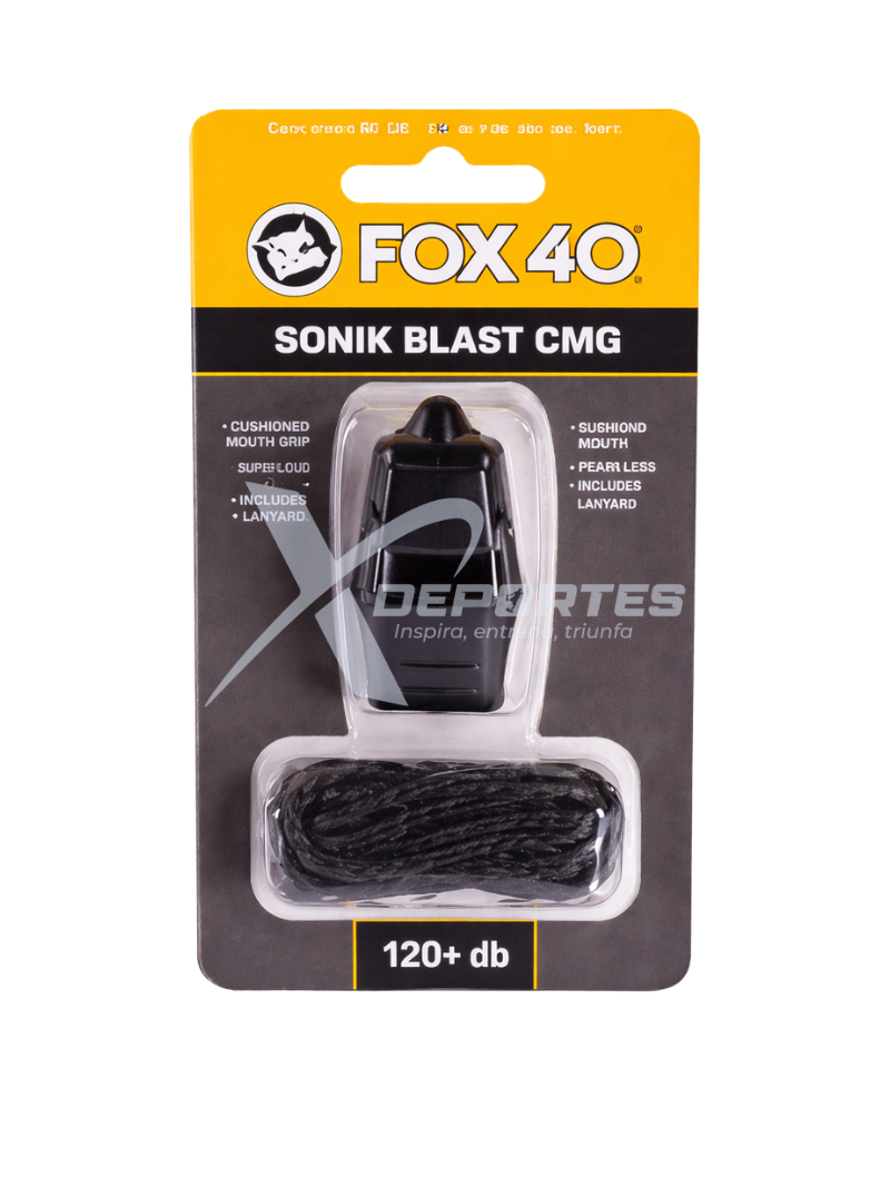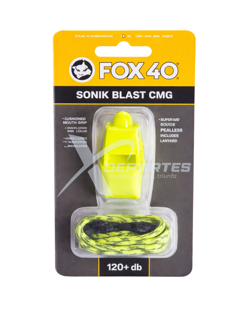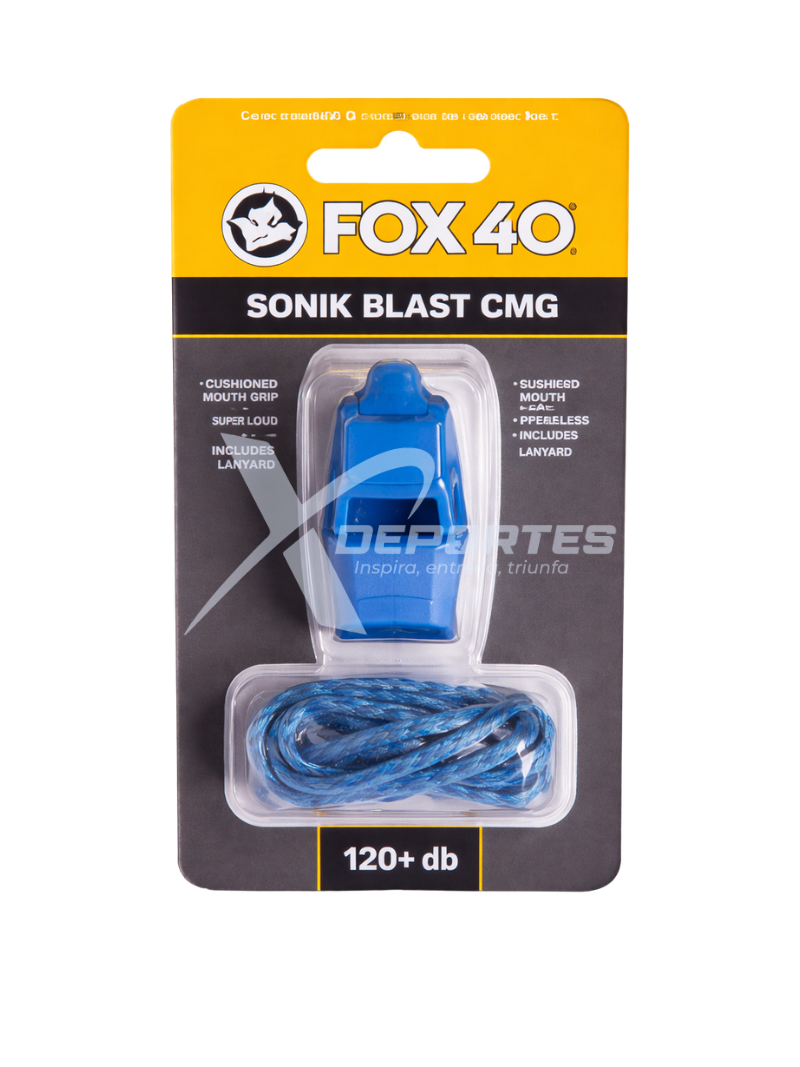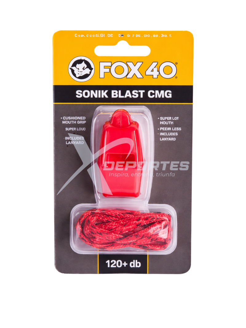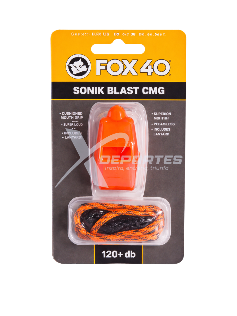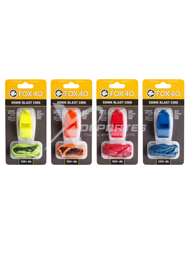 Silbato Fox 40 Sonik Blast CMG con cordón, de 2 cámaras, sonido fuerte de hasta 120 dB, boquilla CMG acolchada y diseño sin piezas móviles para un rendimiento confiable en arbitraje y entrenamiento. COLORES: AZUL, AMARILLO, NARANJA, ROJO, NEGRO