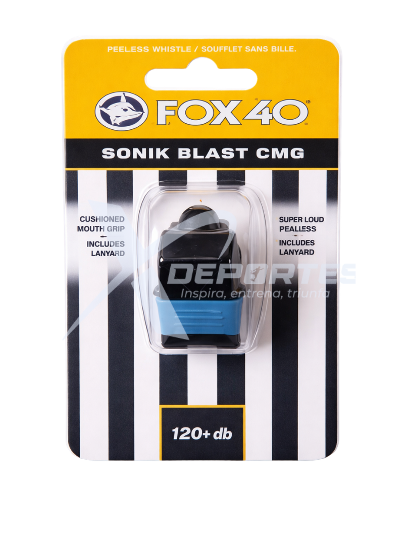 Silbato Fox 40 Sonik Blast CMG de 2 cámaras, con sonido fuerte y claro de hasta 120 dB, boquilla CMG acolchada para mayor comodidad y diseño sin piezas móviles para un rendimiento confiable. COLORES: NEGRO