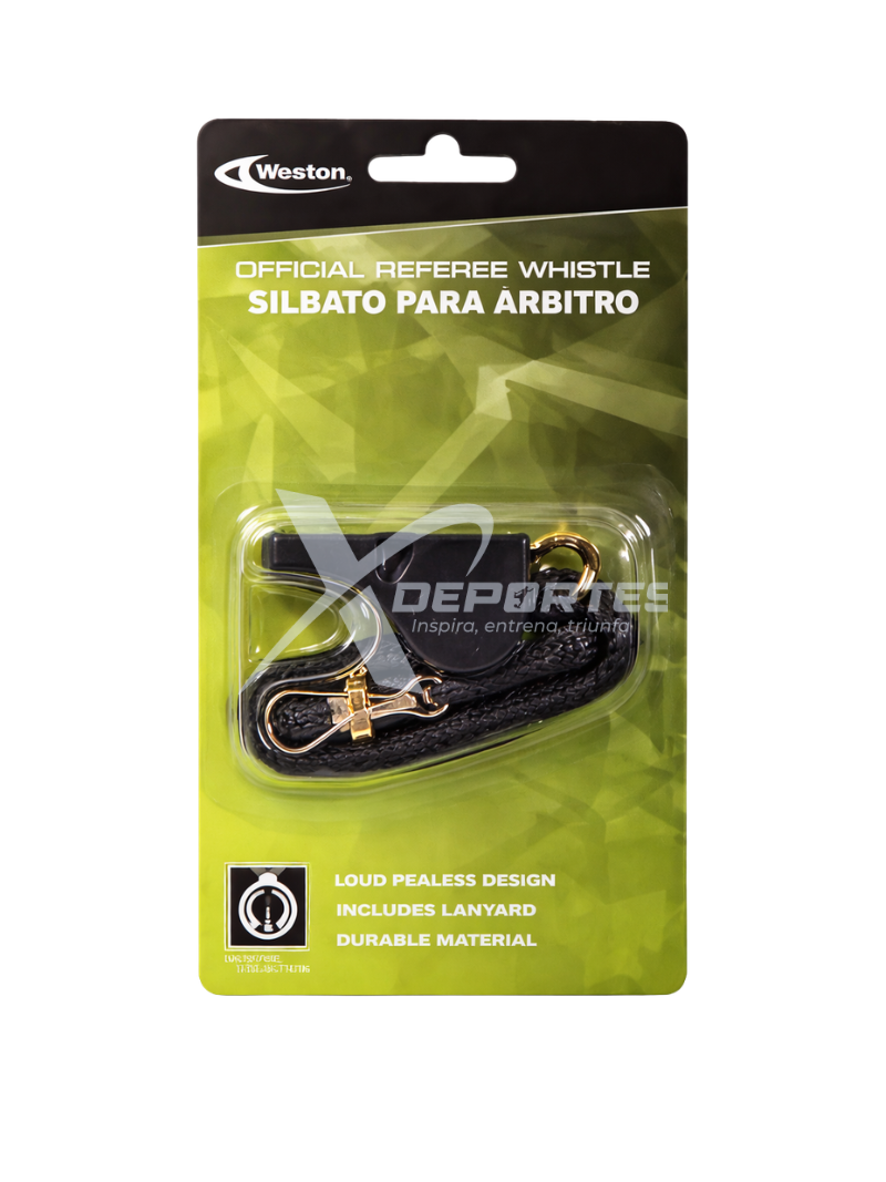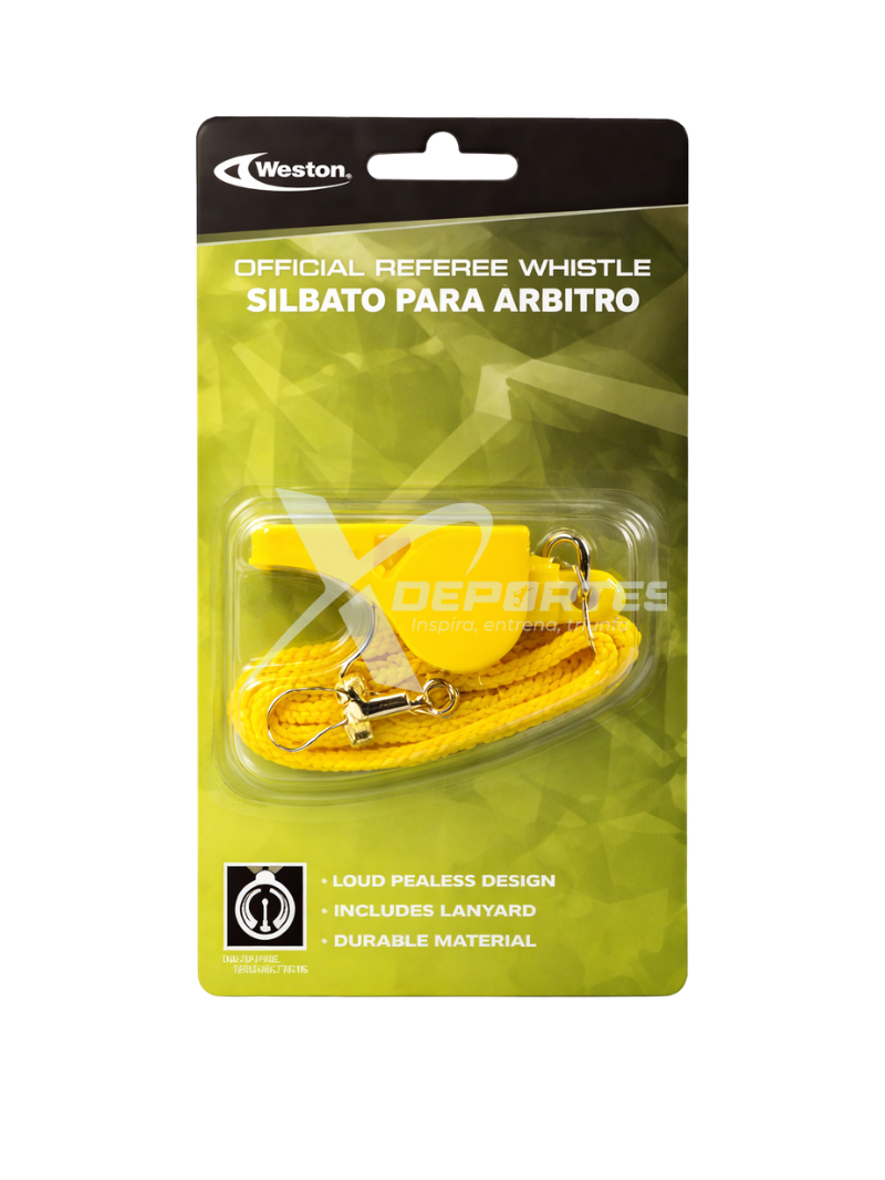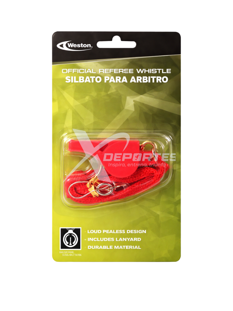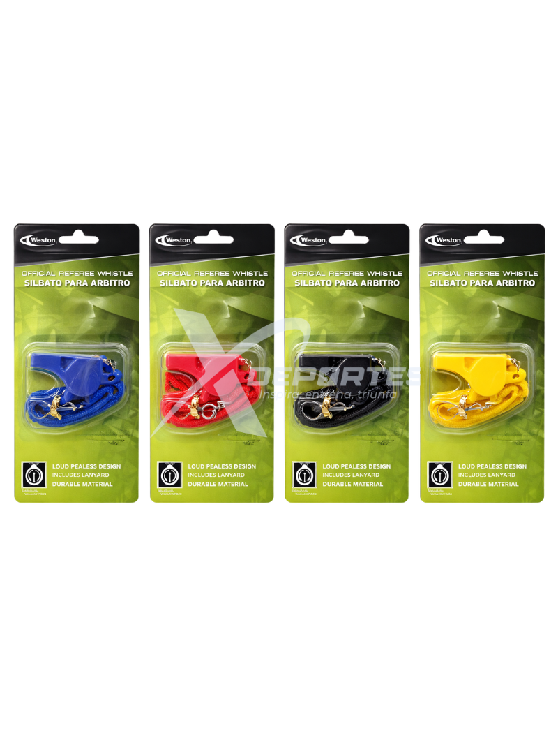 Pito Weston con cordón, fabricado en ABS, con sonido fuerte de hasta 110 dB e ideal para arbitraje, entrenamiento y uso deportivo general. COLORES: AZUL, ROJO, NEGRO, AMARILLO